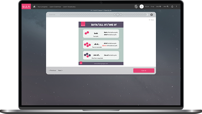 Systematyczna nauka angielskiego na platformie ELLA gwarantuje sukces.